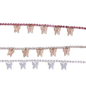 925 Silver Plated CZ Cuban Link Tennis Butterfly Anklet, GPMB1519