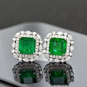 🎁 925 Silver Plated CZ Green Crystal Stud Earrings for Women, HA4479