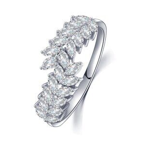 "925 Silver Plated CZ Leaf Shaped Ring For Women, FB16FA1044