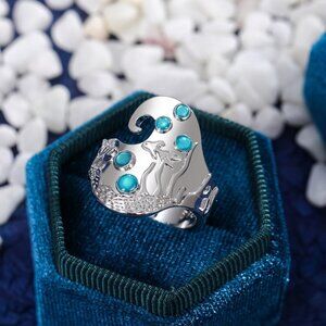 🎁925 Silver Plated Creative Vintage Fish Pattern Blue Gemstone Ring, UNVN12479
