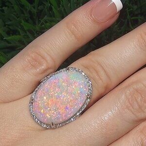 925 Silver Plated Dazzling Large Oval Gemstone Opal Ring for Women, VIP067