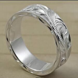 925 Silver Plated Hand Carved Leaf Filigree Ring Size 7