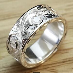 925 Silver Plated Hand Carved Leaf Filigree Ring
