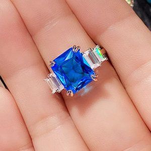 🍁925 Silver Plated Iced Out CZ Blue Crystal Wedding Ring, MARR9449