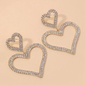 "925 Silver Plated Lovely Heart Statement Earrings, FB16FA1098