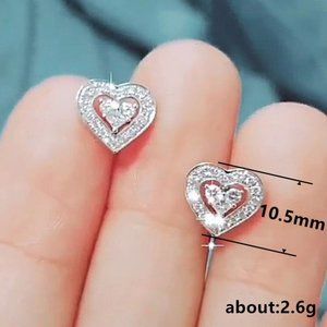🎁925 Silver Plated New Arrival CZ Heart Shaped Earings, MARR9349