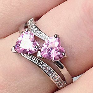 💞925 Silver Plated Pink Double Heart-Shaped CZ Ring, MLNN1202