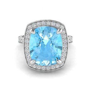💎 925 Silver Plated Princess Sea Blue Aquamarine Ring, FB16FA1050