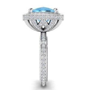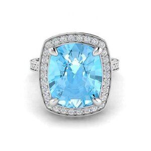 "925 Silver Plated Princess Sea Blue Aquamarine Ring, FB16FA1050