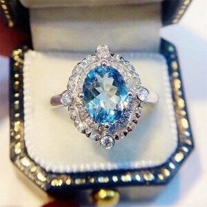 ⚡ 925 Silver Plated Sea Blue Oval Shaped CZ Ring for Women, FB16FA1034