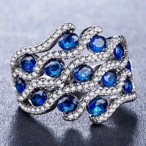 💎 925 Silver Plated Stylish Blue CZ Diamond Ring for Women, FB16FA1104