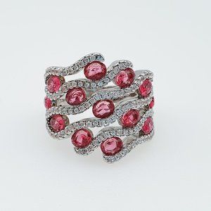 🍁 925 Silver Plated Stylish Red CZ Diamond Ring, FB16FA1103