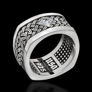 💎925 Silver Plated Unique Black Huge Heavy Men Ring, MLNN1239