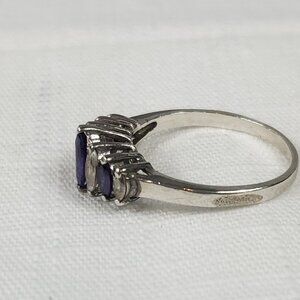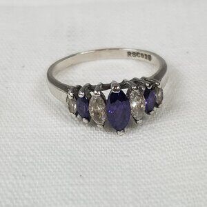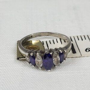 925 Silver Purple & Clear Stone Ring Antique Style Raised Setting Sz 21mm US 10