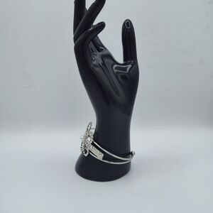 .925 Silver Rhinestone With Faux Pearl Flower Bangle Bracelet❗❗5/$25❗❗