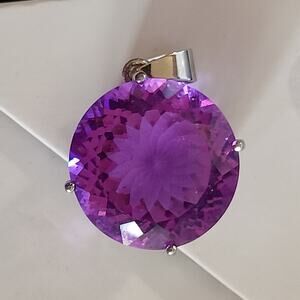 Round Crystal Purple Amethyst Color Solitaire Pendant Charm