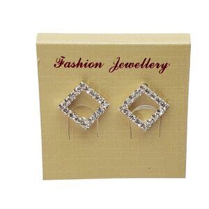 925 Silver Square Frame Rhinestone Post Earrings