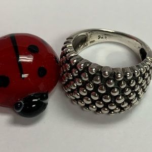 Adorable silver statement ring. stamped 925, size 7. Please see pics thoroughly as they are part of the description and condition of the item.