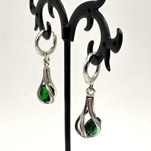 925 Silver Teardrop Earrings Green Lab Emerald Fashion Anniversary Birthday NEW!