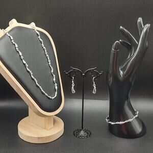925 Silver Teardrop Necklace Bracelet & Earrings Set Anniversary Birthday NEW!