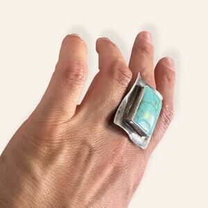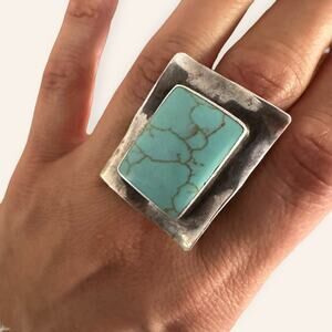 925 Silver Turquoise Statement Ring w/ Adjustable Band size 6-9