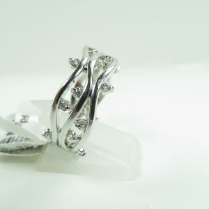 Meticulously crafted Winding Vine band finished in sterling silver 925 inlaid with a set of Spectacular CZ diamonds. Shipped in a small jewelry box.