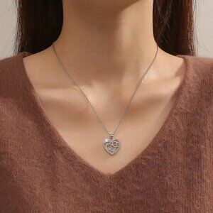 Brand New Women's Silver Diamond Heart Pendant Necklace