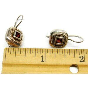 925 Square Amethyst Earrings Hoop Clasp Sterling Silver Vintage Patina