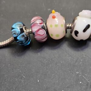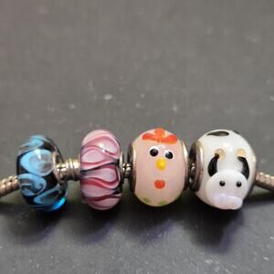 925 Stamp Core Charm Beads: Cow, Chicken– Murano Style Glass. Unbranded