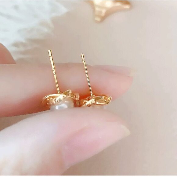 925 Stamped 18k Gold Plated Minimalist Round Pearl Retro Vintage Stud Earring