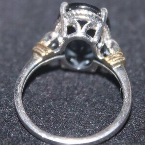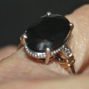 Gorgeous ring. White stones register as a 9 on an MOHS scale. Sizing info is pics as well as condition.
