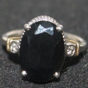 925 Sterling 14K Gold Onyx White Sapphire Statement Cocktail Ring