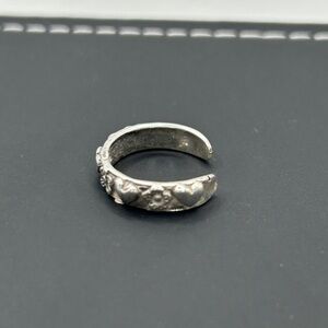 925 Sterling Adjustable Silver Heart and Flower Toe or Pinky Ring