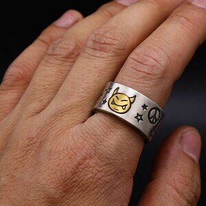 925 Sterling Cartoon Devil Face Boho Ring (Gold Face) #1354
