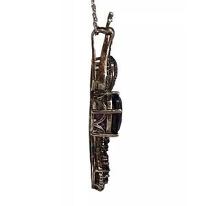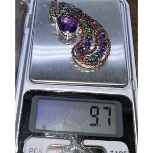925 Sterling Signed DK Art Deco Peacock Rhinestone Pendant Mardi Gras.