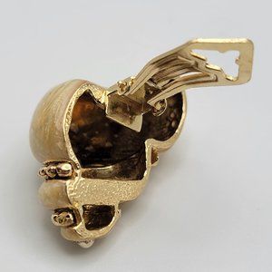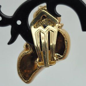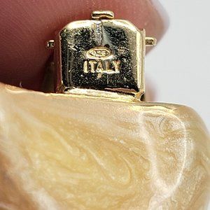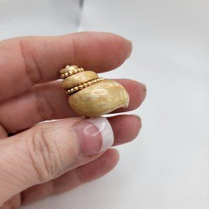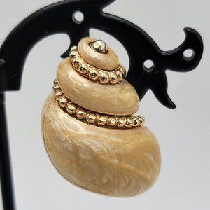 Unique earrings made of 925 Sterling silver plated with gold and featuring tan mother of pearl in the shape of a conch shell.