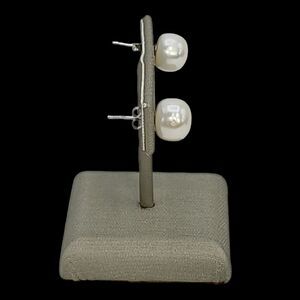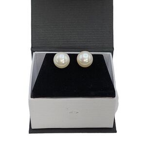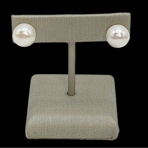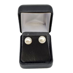 925 Sterling Silver 10mm Button White Cultured Freshwater Pearl Stud Earrings