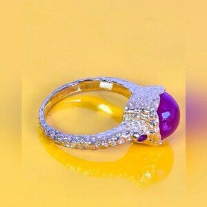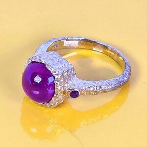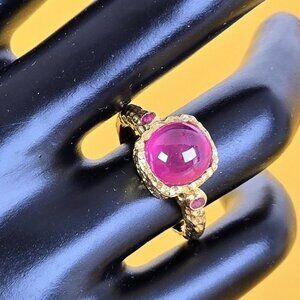 925 Sterling Silver 14K Gold Plated Avant-Garde Ring with Natural Ruby Gemstone