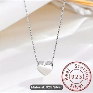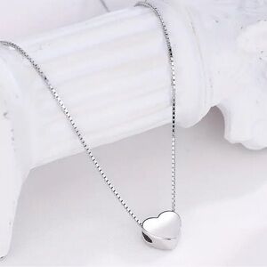 925 Sterling Silver 3D Glossy Heart-Shaped Pendant Necklace Simple Love Clavicle Chain Silver Color♥️😍 16 inches