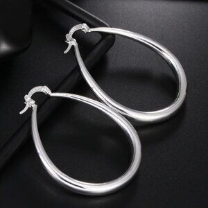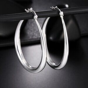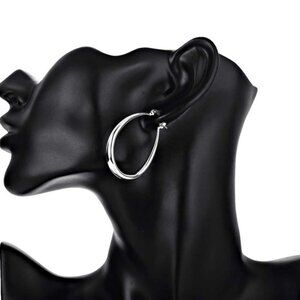 925 Sterling Silver 41MM Smooth Circle Big Hoop Earrings