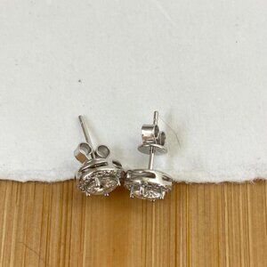 925 Sterling Silver .5CT 5mm Round Moissanite Halo Stud Earrings 1 CT TW