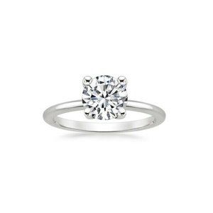 Subtle solitaire engagement ring in rhodium plating features a round cubic zirconia center stone