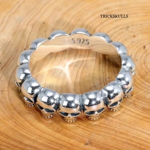 925 Sterling Silver 6mm Skulls Band New Modern Retro Skull Ring