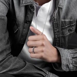 This solid 925 sterling silver skull ring has a classic minimalist design that is both elegant and punk. The ring has detailed 6mm skulls all the way around and weighs 5 grams on average. It’s a versatile design that makes a perfect gift.