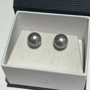 925 Sterling Silver 9mm Cultured Freshwater Pearl Stud Earrings White Dyed Gray