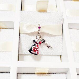 Step into the whimsical world of Wonderland with this 925 Sterling Silver Alice in Wonderland Queen of Hearts Dress dangle charm. Intricately designed, this charm showcases the Queen's iconic dress, capturing the essence of the beloved character. Made from high-quality sterling silver, it fits perfectly on charm bracelets and bangles, adding a playful touch of Disney magic to your collection.