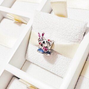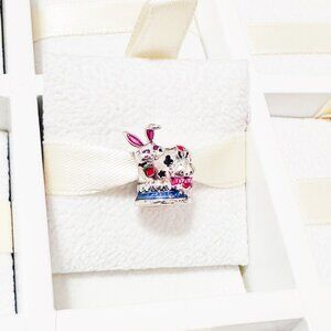 Hop into Wonderland with this 925 Sterling Silver Alice in Wonderland White Rabbit Hat charm. Featuring the iconic White Rabbit’s hat, this charm captures the whimsical spirit of the classic tale. Crafted from high-quality sterling silver, it fits perfectly on Pandora bracelets and bangles, adding a playful and magical touch to your collection.