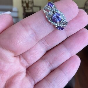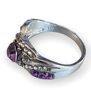 925 Sterling Silver Amethyst Lilac Ring Vintage Pave Clear Cut