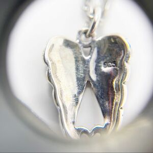 925 Sterling Silver Angel Wings with Heart Dainty Pendant Necklace Vintage