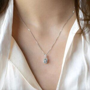 925 Sterling Silver Aquamarine Pendant Necklace Dainty CZ Diamond Necklace